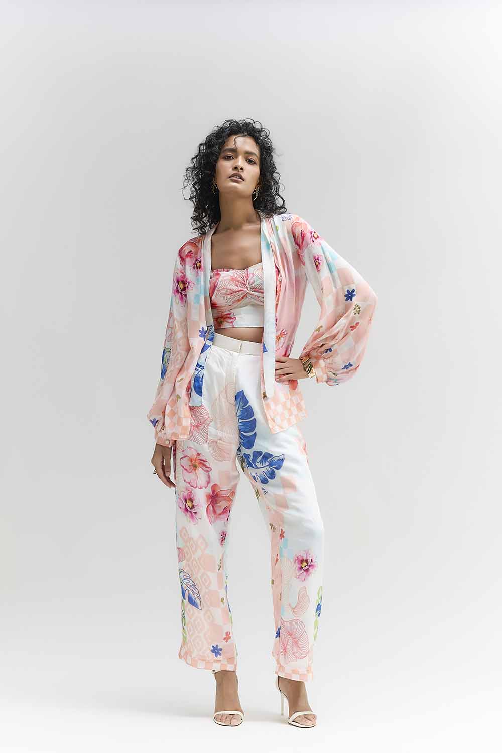 MULTI COLOURED SILK ABSTRACT FLORAL PRINTED TIE-UP SHIRT